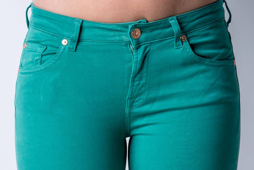 Klassieke skinny met medium heuplijn . Tailleband loopt achteraan